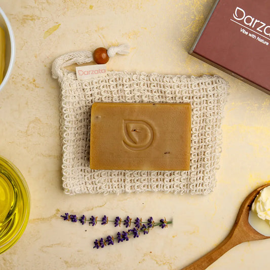 Darzata soaps use a base of Shea Butter instead of caustic agents which can dehydrate the skin and make it sensitive.